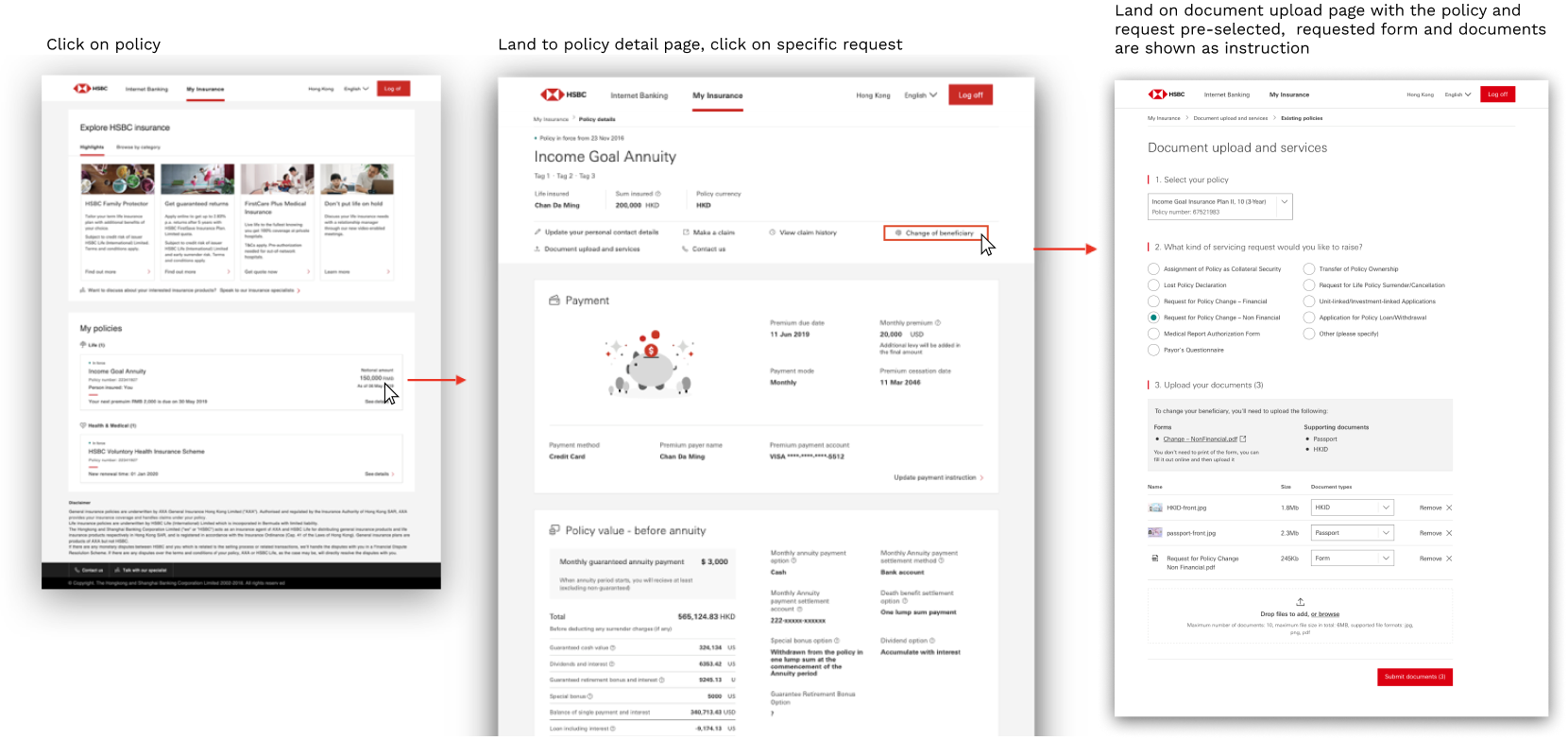If customers want to make any changes to their existing policies, e.g. change of beneficiaries (not all of journey online are online yet). Therefore, customers would have to submit a form together with supporting documents (e.g. ID copy)