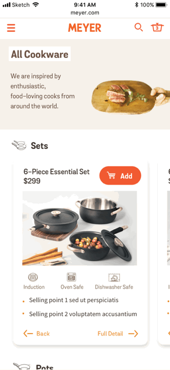 The case study talked about how we reimagine cookware online store for Meyer – a new brand that focuses on high-quality products that help people create better food. We were looking for a e-commerce site with strong brand presence with great story-telling.