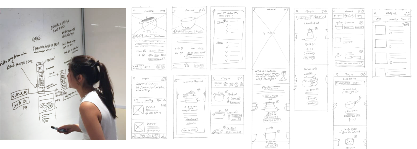 We gathered people around the world to test the prototype, all of them are home cook that shops online. Each user test lasted around one hour, starting with some questions on cooking, and then scenario tasks and ended with lots of following questions. It helped us to refine the user experience and learn more on customer cookware shopping expectations.