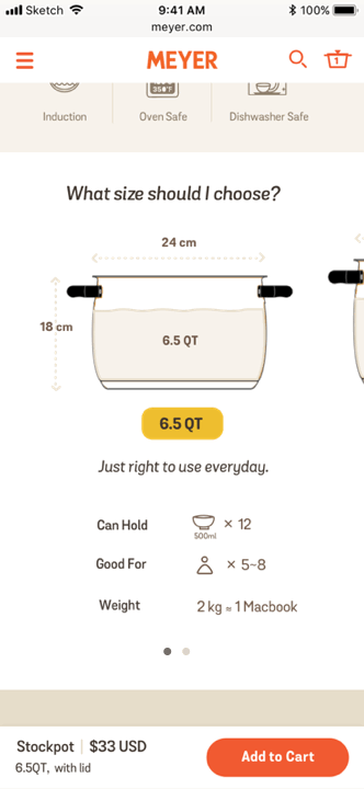 Many of the cookware e-shop show only number (e.g. 8″, 6QT, 3kg) which sounds very abstract for customer to imagine the size and weight balance.