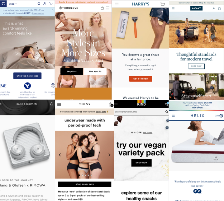 Successful E-Commerce with strong brand presence : Casper, Harry’s, Thirdlove, Kind Snack, Away, Thinx, Beoplay, etc..