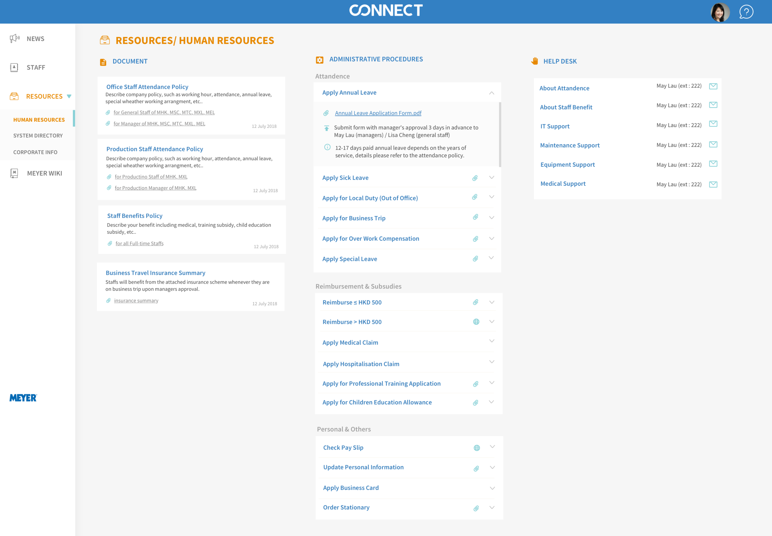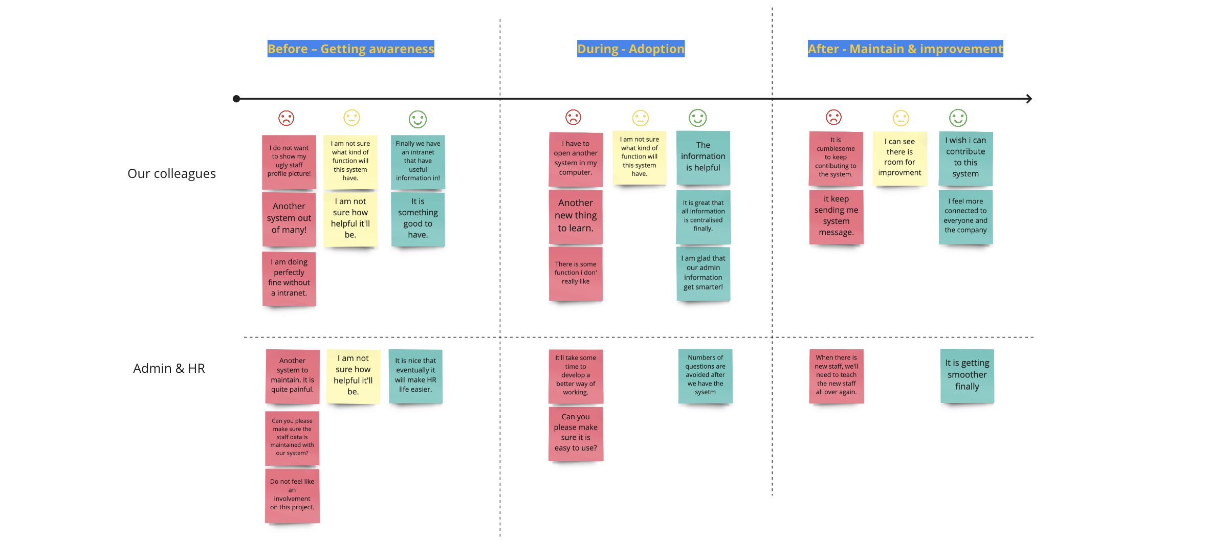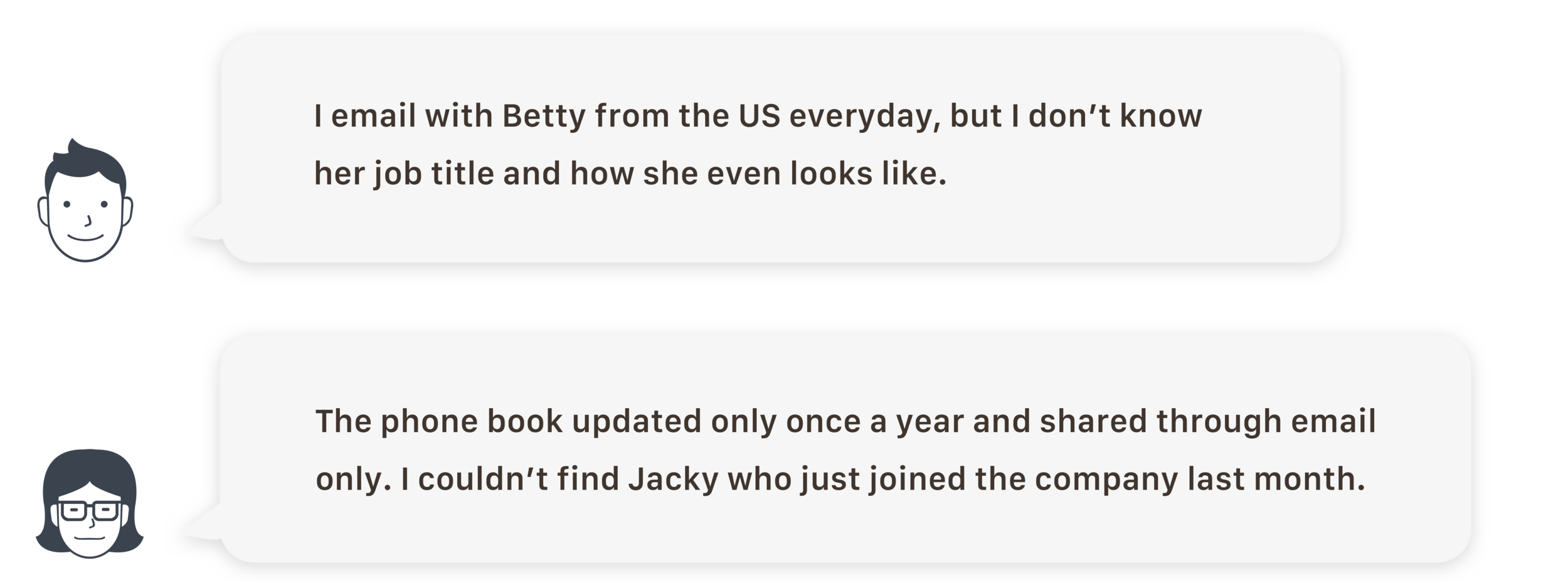 When it came to intranet, it required every effort from every team, especially the human resource team. In order to collect information and resources, we communicated with HR team over the world, to learn the information they had and their difficulties.