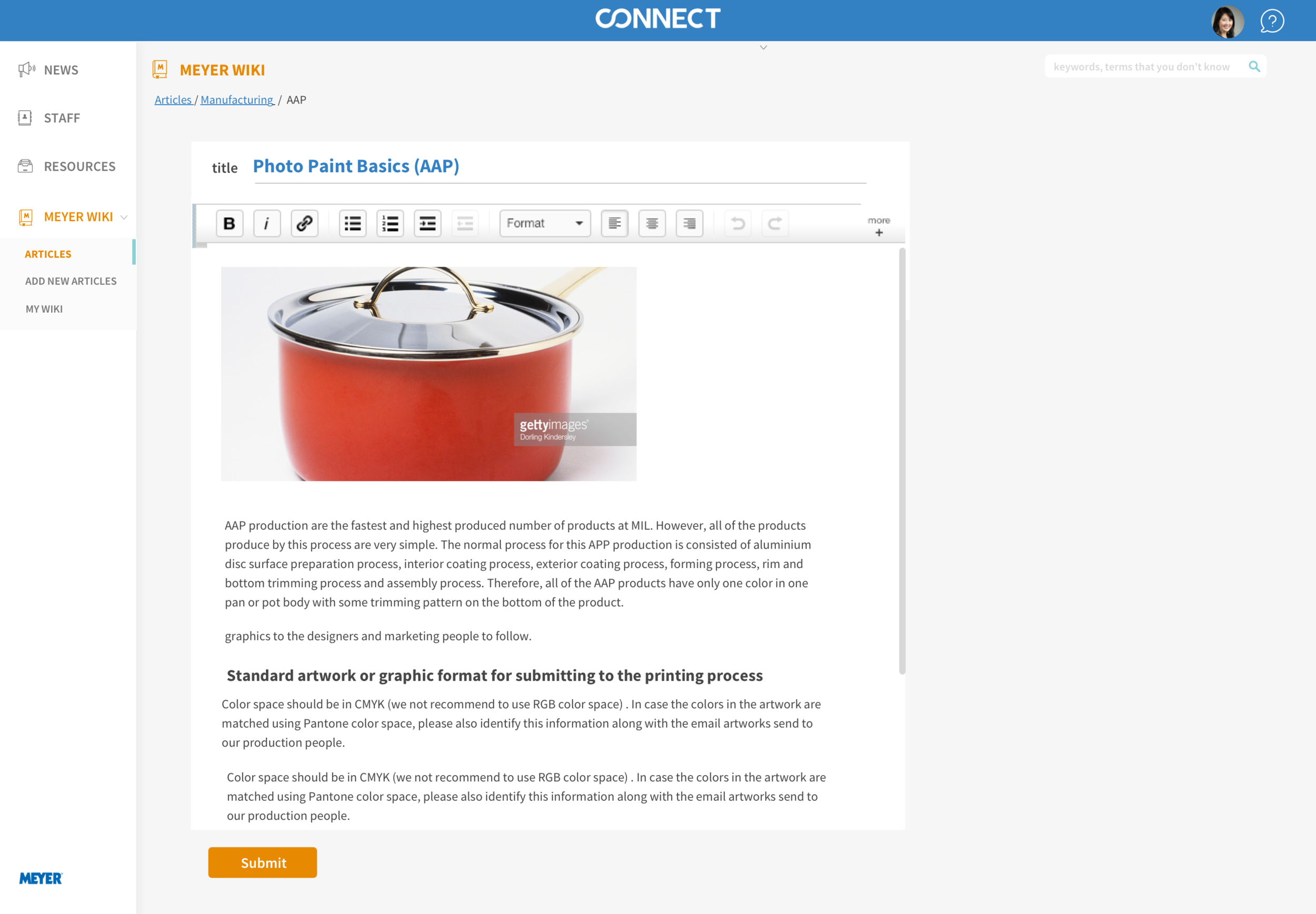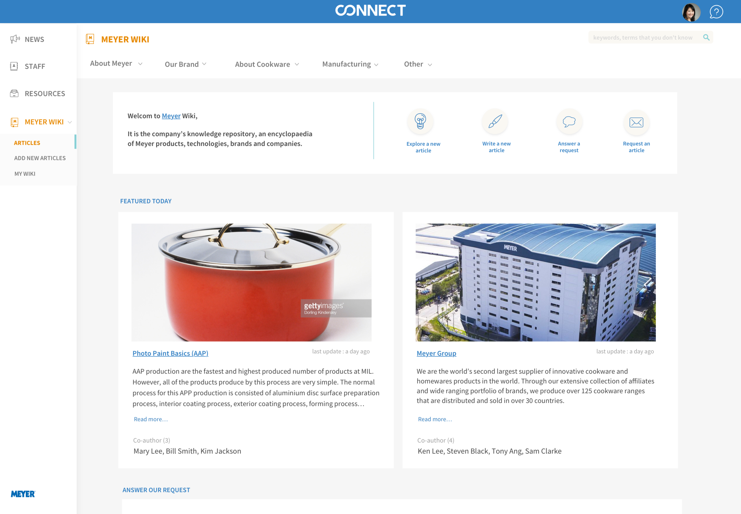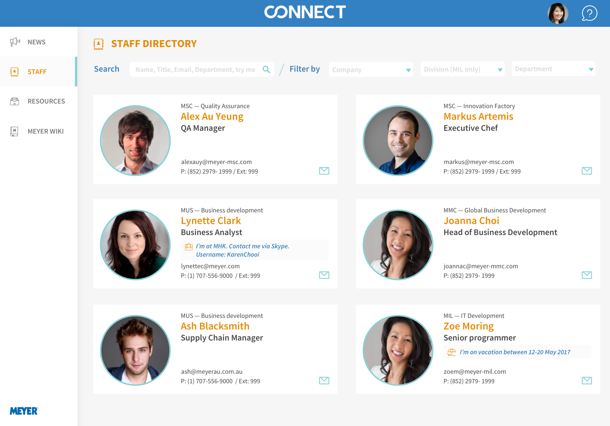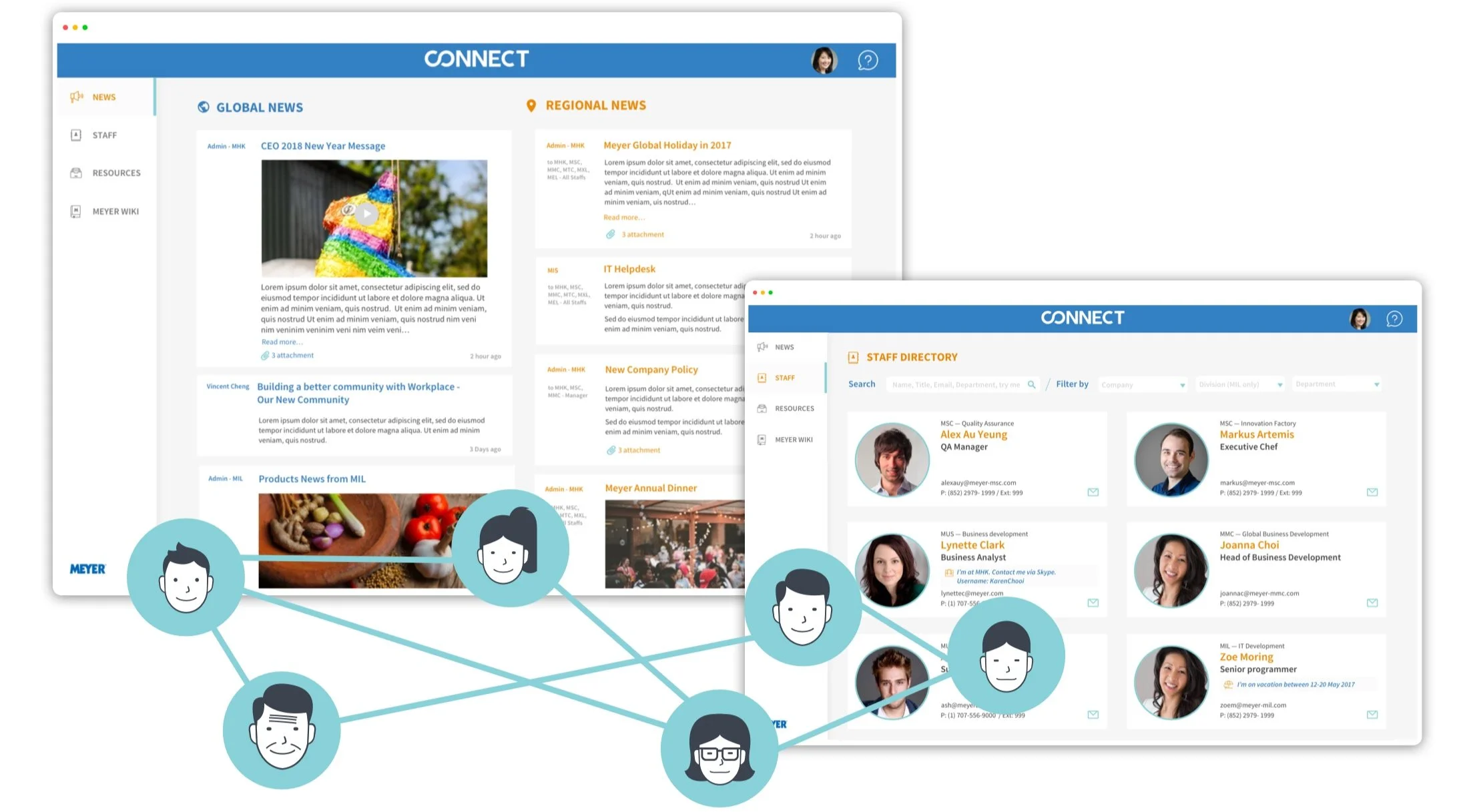 Meyer is one of the largest cookware manufacturer in the world with office located over thirteen countries. While the company was expanding very quickly, staff were disconnected with others and the company. Therefore, this project was to create the first intranet that re-connect everyone in the company. The case study talked about how we use research to define our most important functionality.